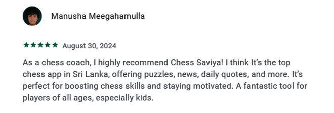 චෙස් ක්රීඩාවේ සියලුම දේ එකම තැනකින් ගත හැකිවන පරිදි නිර්මාණය කළ චෙස් සවිය ඇප් එක Mobile App එකක් වගේම Web App එකක් ලෙස Mobile, Tablet, Laptop Computer ඇතුළු ඕනෑම උපාංගයක් මගින් දැන් ඔබට භාවිතා කරන්න පුළුවන්!
